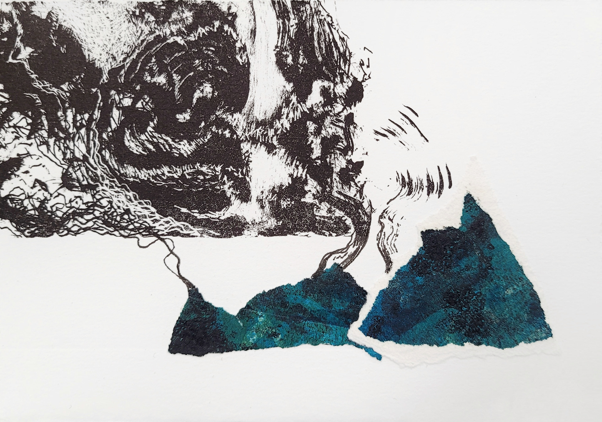 Correo Fortuito es una serie de postales de 10x15 cm que combinan grabado, collage y dibujo. En esta serie continúo mi exploración con cartografías interiores a través del formato postal, resignificando el acto de enviar correspondencia. Cada pieza es un mapa visual que evoca territorios reales e internos, integrando palabras y letras como vestigios de narrativas abiertas. La intención es resignificar el acto de enviar correspondencia, convirtiendo cada envío en una exploración del azar y la memoria. Me interesa pensar que en el silencio se revela el espacio como fragmentos de viajes entre lo real y lo imaginado. Cada postal es una pausa, un mensaje suspendido en tránsito, aguardando su revelación en manos ajenas. Como parte de esta serie, registro cada envío en un libro de artista, trazando un mapa de recorridos que documenta su viaje.